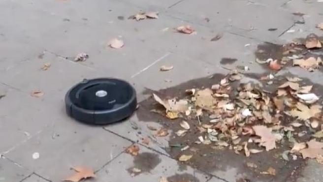 "Algú s'ha deixat una porta oberta", ha escrit Canosa costat del vídeo, en el qual apareix el Roomba campant al seu aire per la vorera al costat de les fulles fins a xocar contra una paret i canviar el seu rumb.